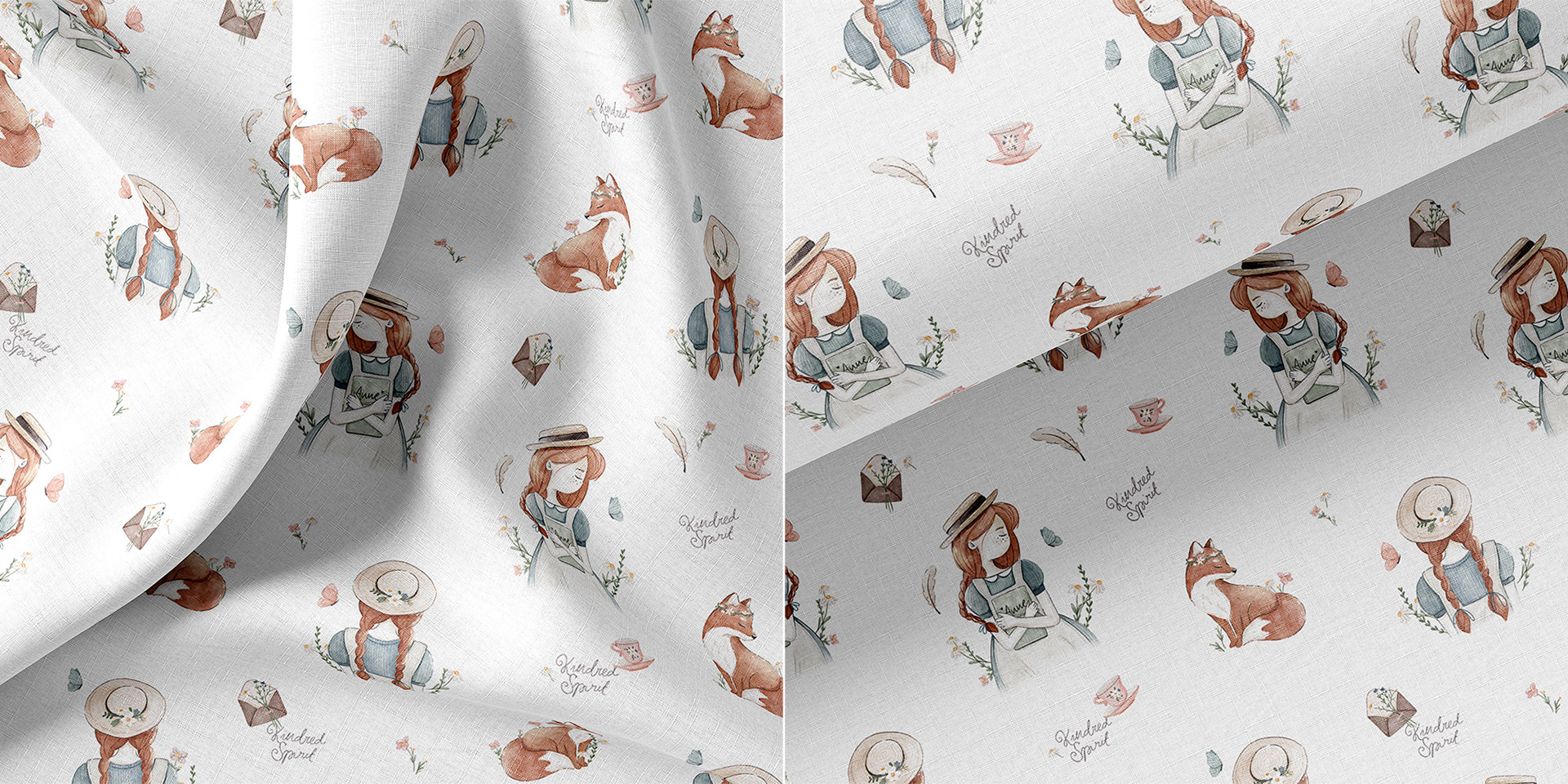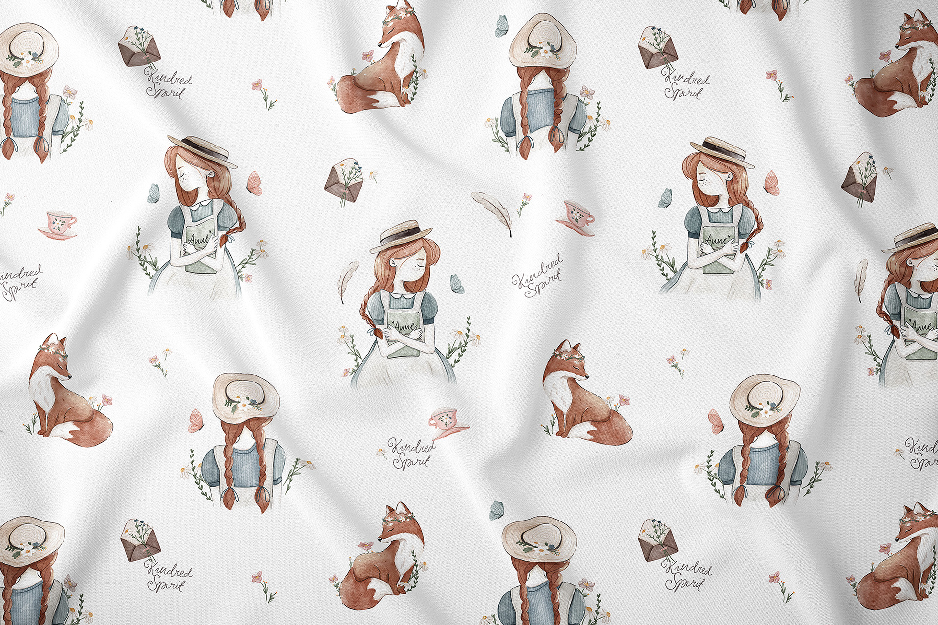 Anne of Green Gables - Anne with an e - a digital watercolor textile pattern design.