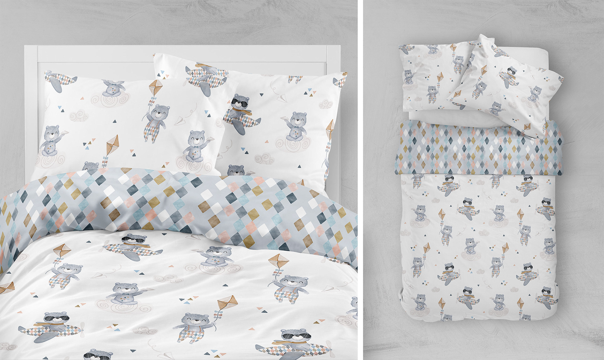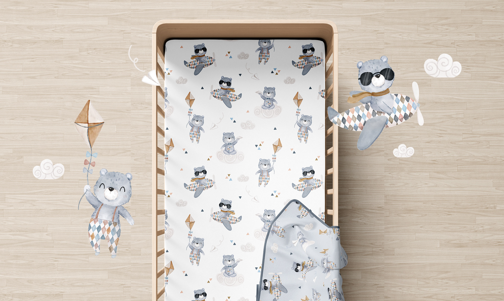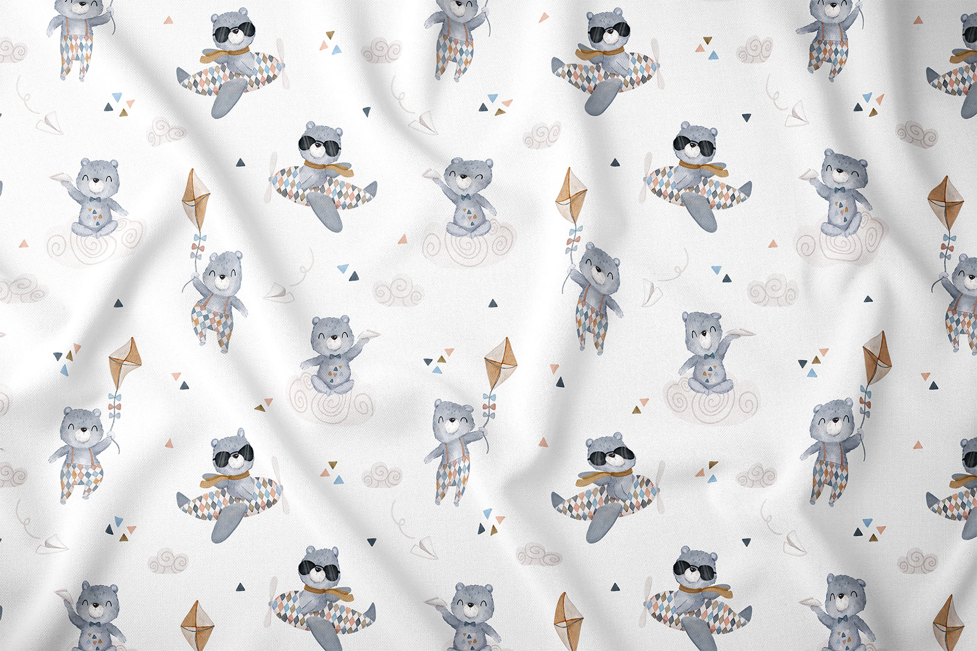 Bear in the air - cute gender neutral watecolor textile nursery pattern;