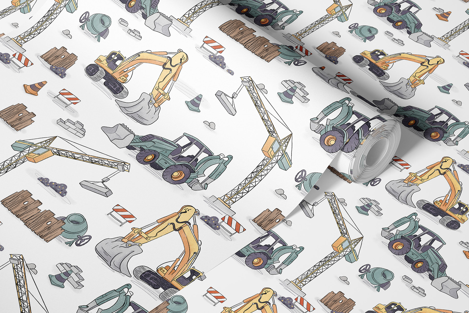 Created with children’s spaces in mind, Construction Site works well as wallpaper for kids’ bedrooms, playrooms, or creative corners. The dynamic elements and industrial theme add character to interiors without feeling too loud, making it a great backdrop for rooms that balance fun and function.