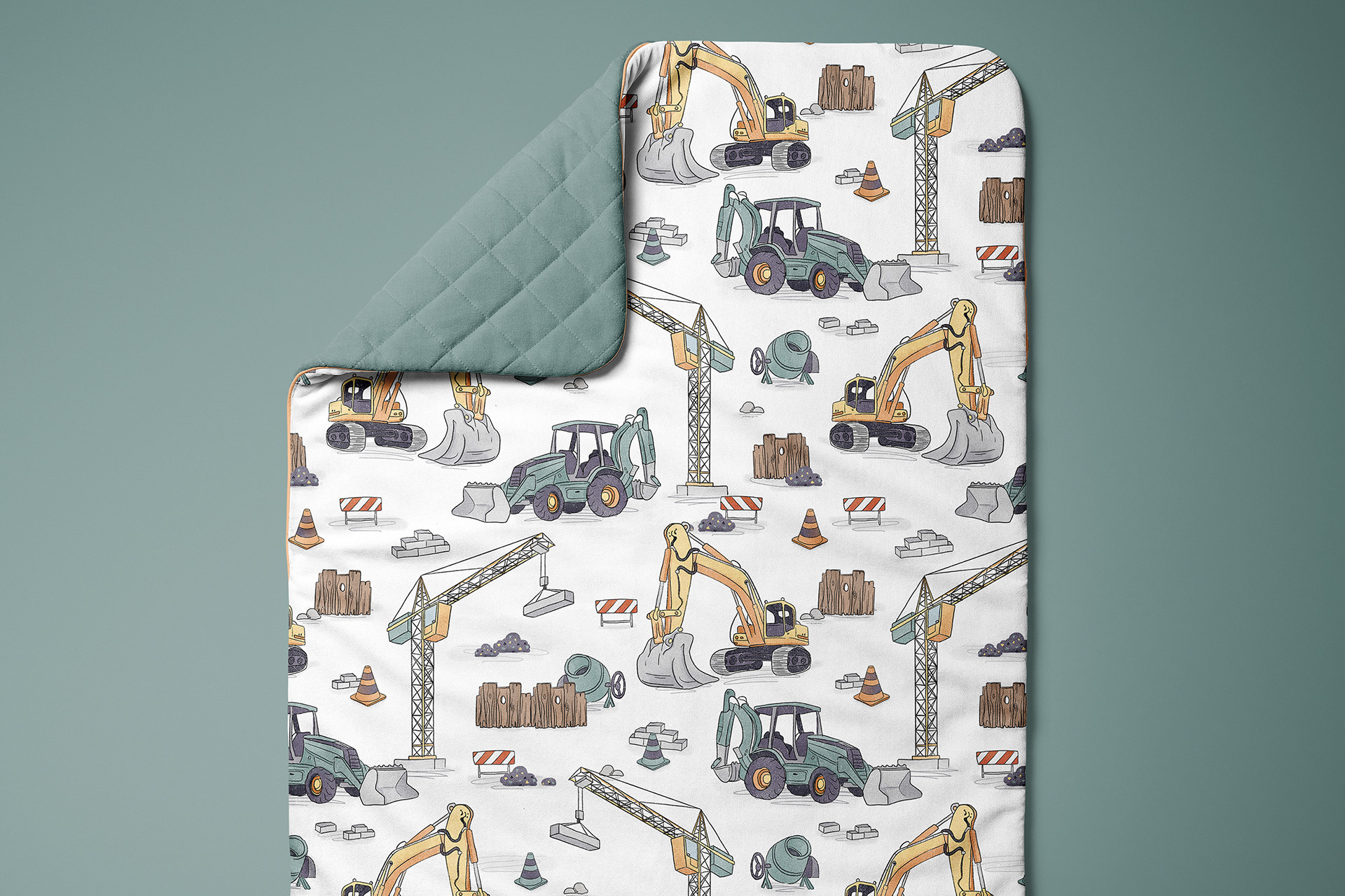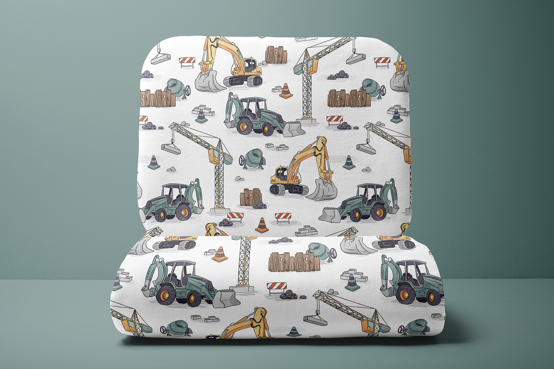 Construction Site is a playful surface pattern inspired by the busy world of building and machines at work. Hand‑drawn construction vehicles, equipment, and tools are arranged in a repeating design that captures the energetic spirit of a work zone while keeping the overall look friendly and accessible.