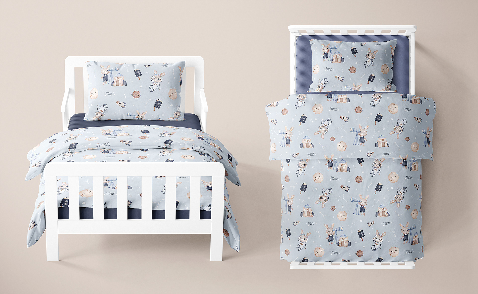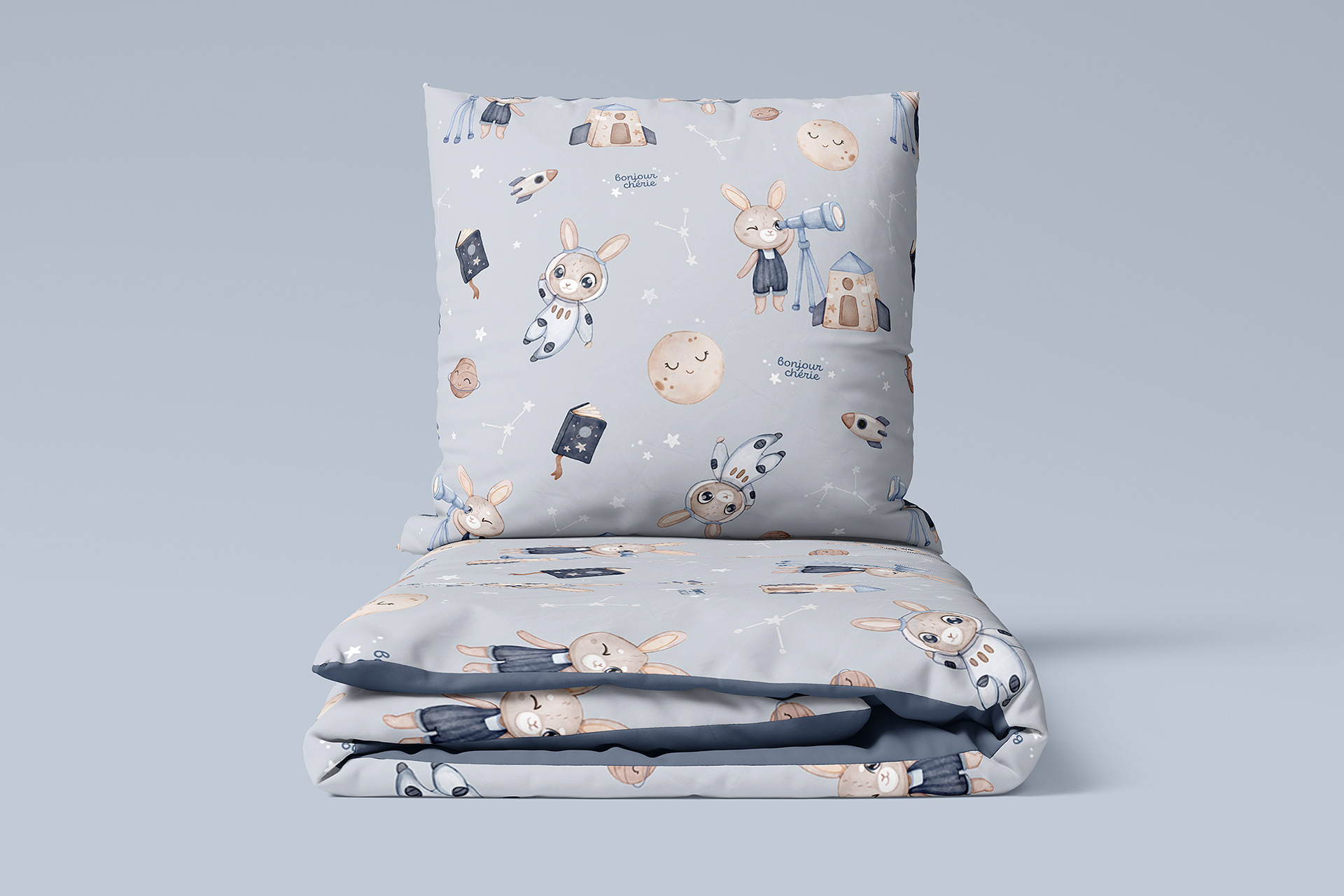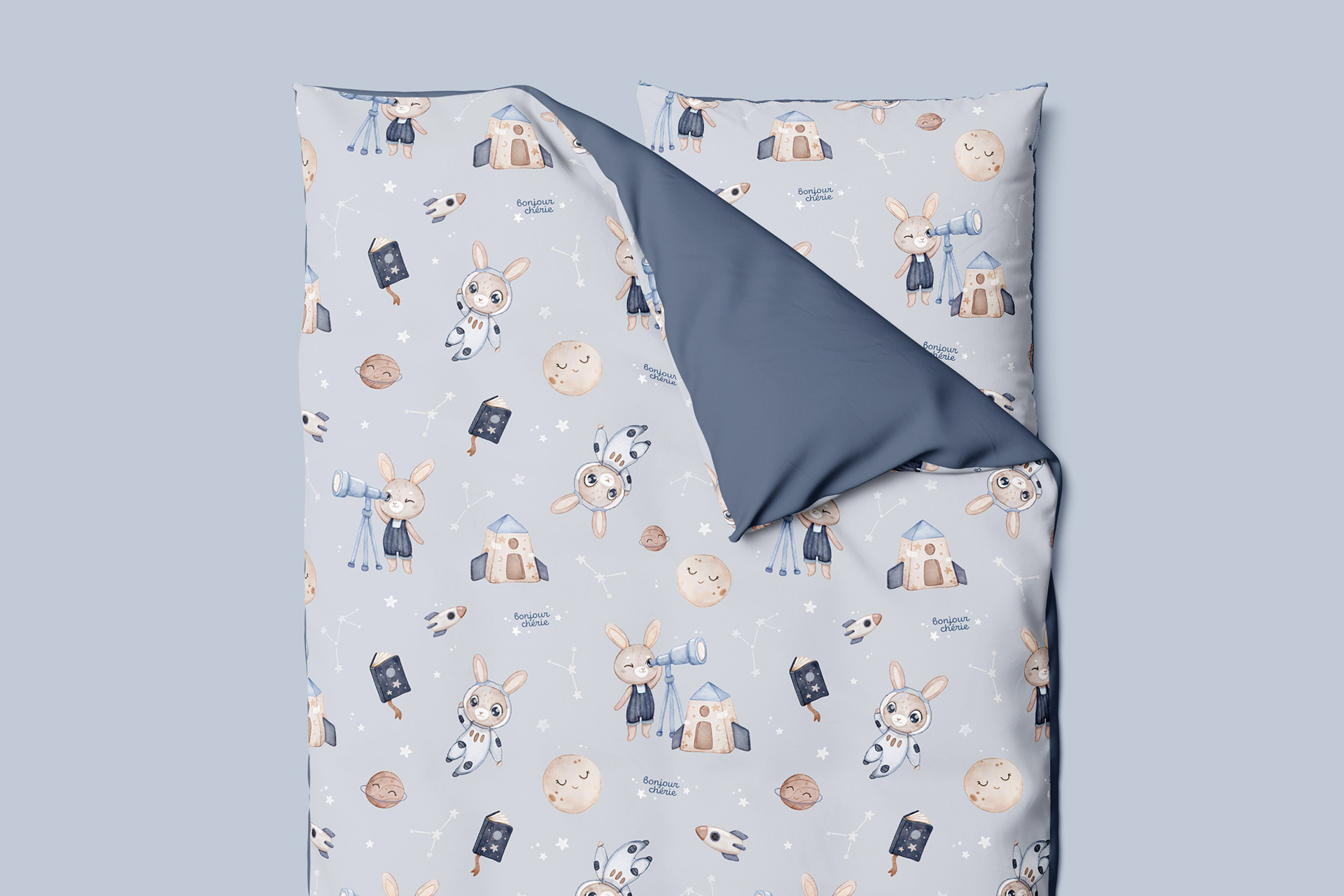 The Little Astronomer - digital watercolor textile pattern design for little night sky lovers and  future astronomers :)