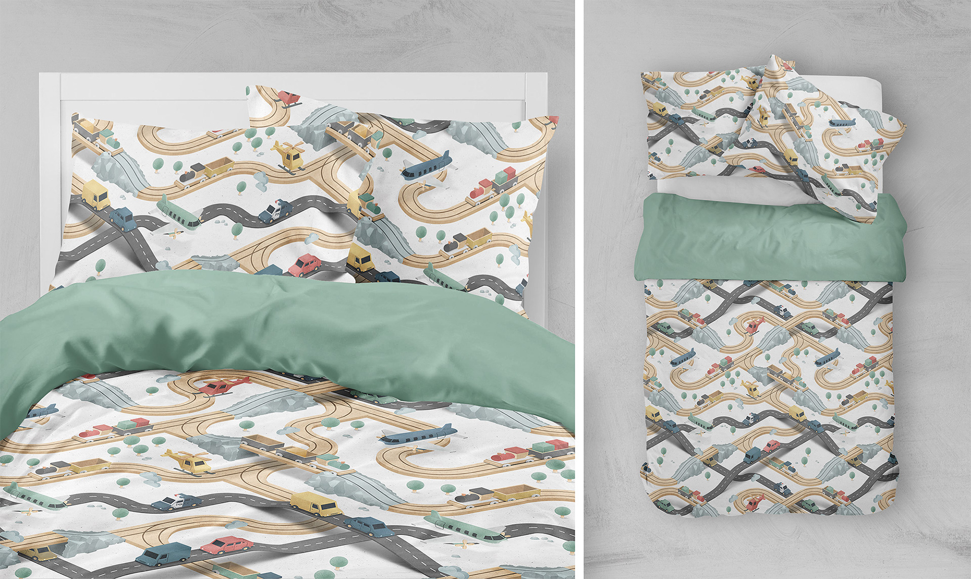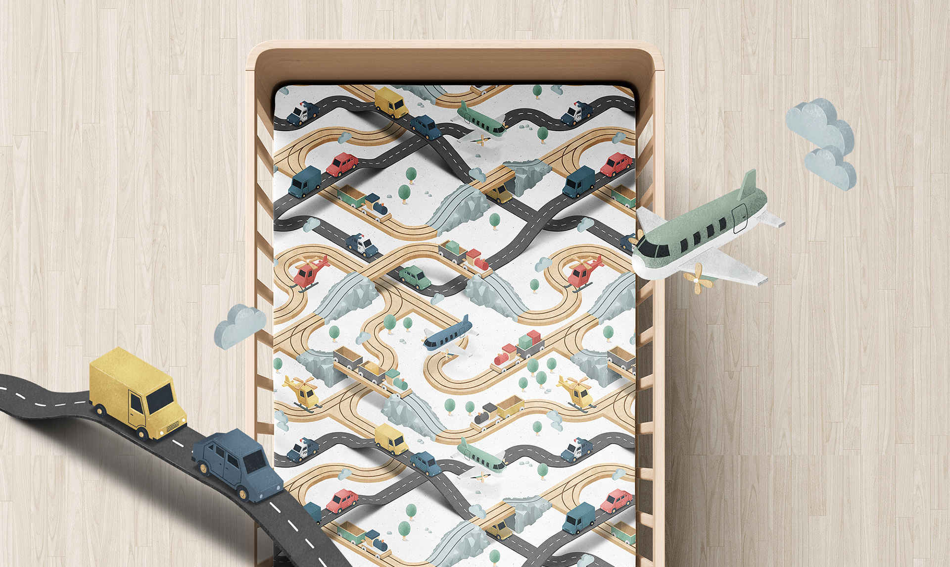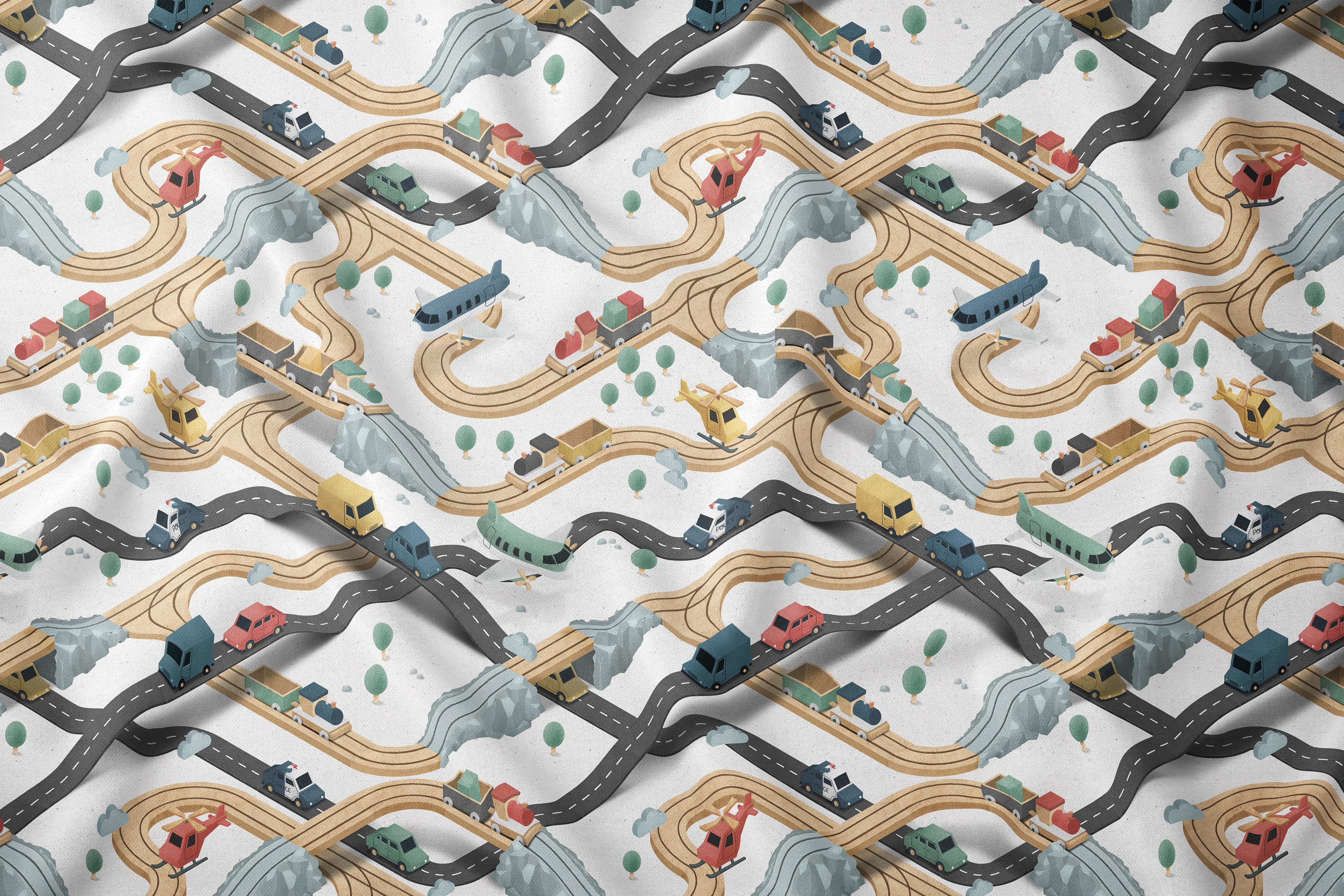 Wooden Train - an isometric textile pattern design.